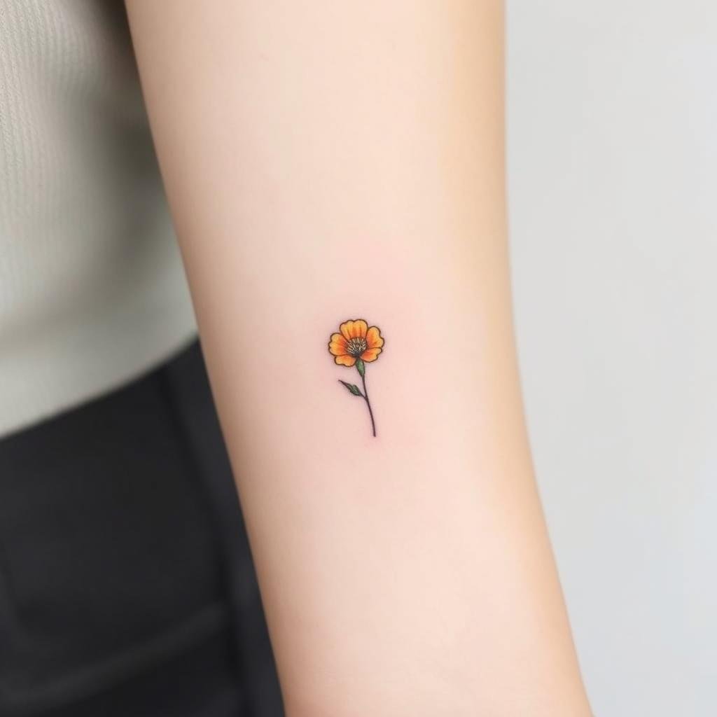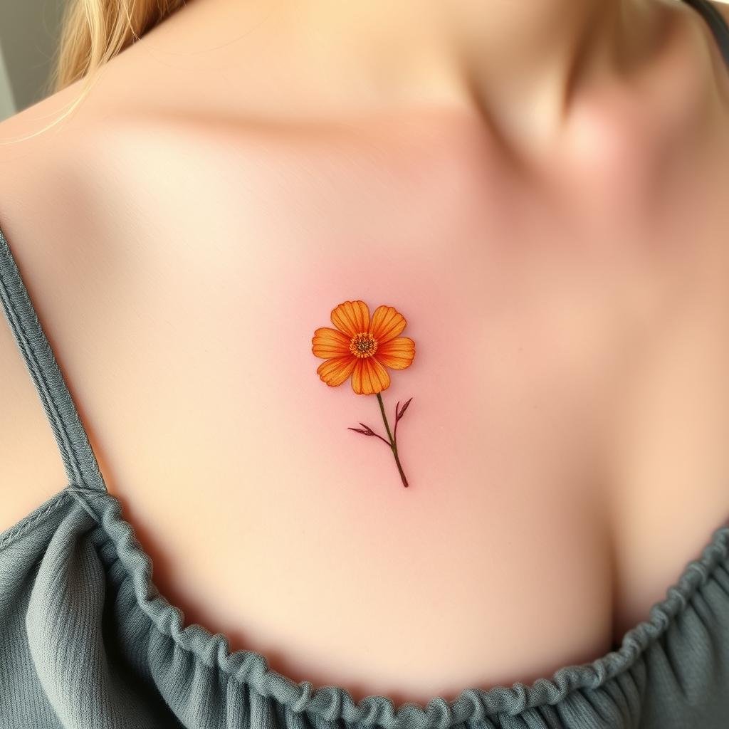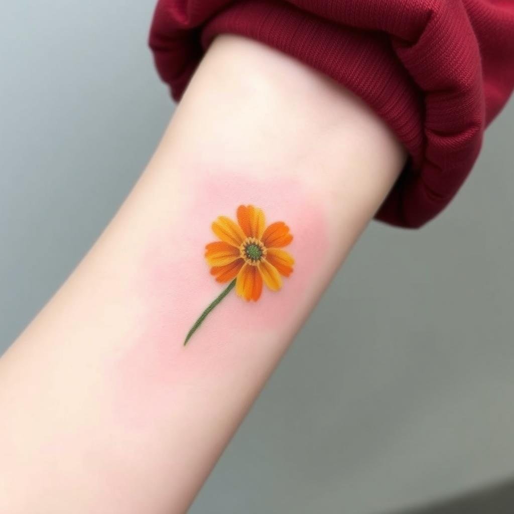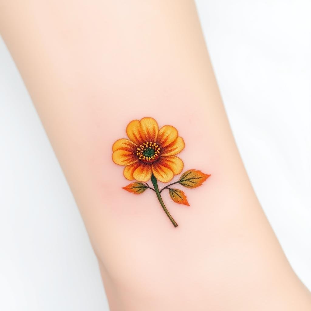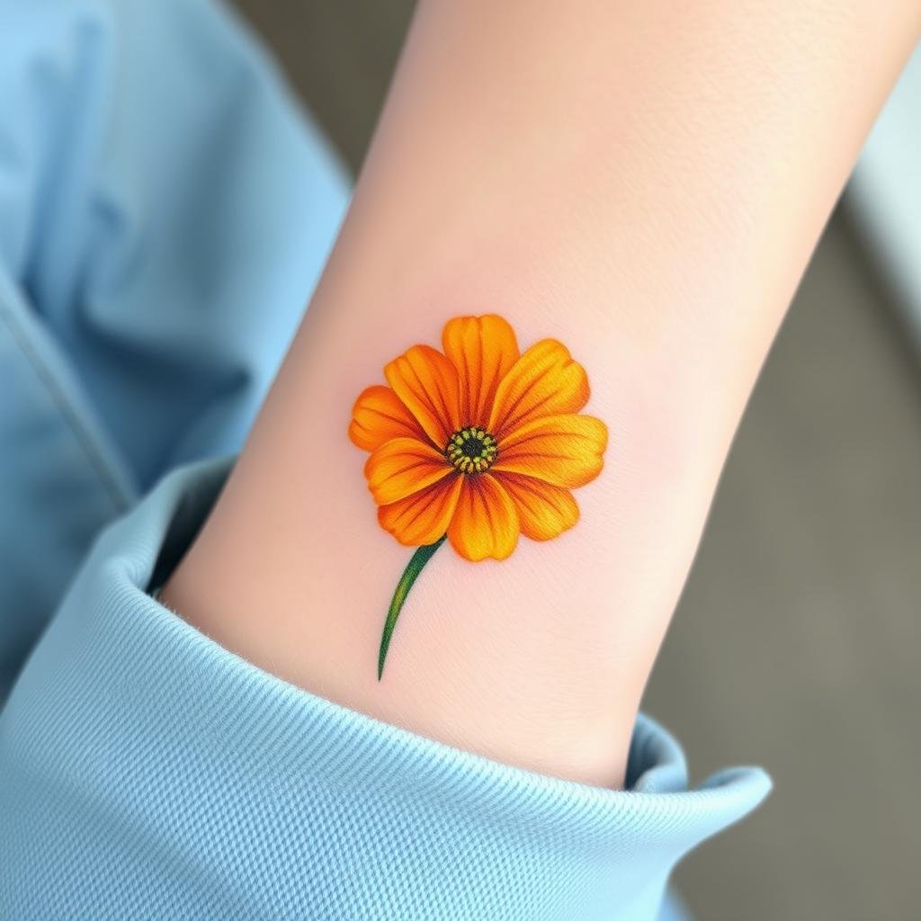 Tiny tattoos are popular for those who like subtle expressions. October birth flower tattoos offer beautiful, simple designs. They can be personal and discreet. These small designs show the beauty of marigolds and cosmos in a tiny way.