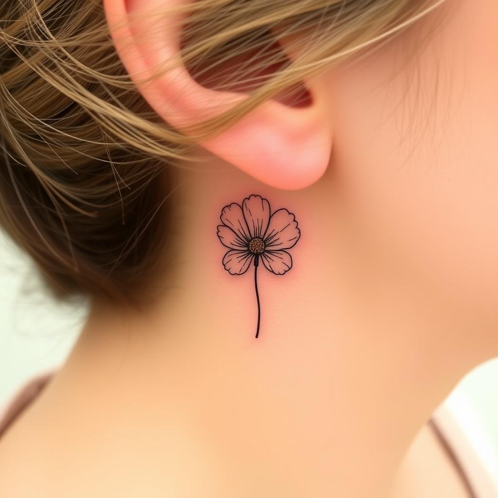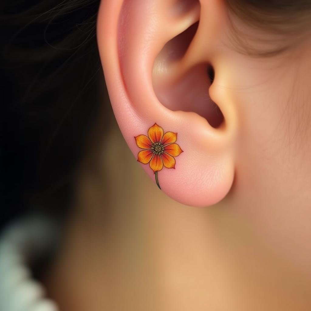 An october birth flower tattoo behind the ear is very intimate and elegant. This spot is hidden but can be shown when you want. Cosmos and marigold designs fit well here, making a quiet but strong statement about your style.