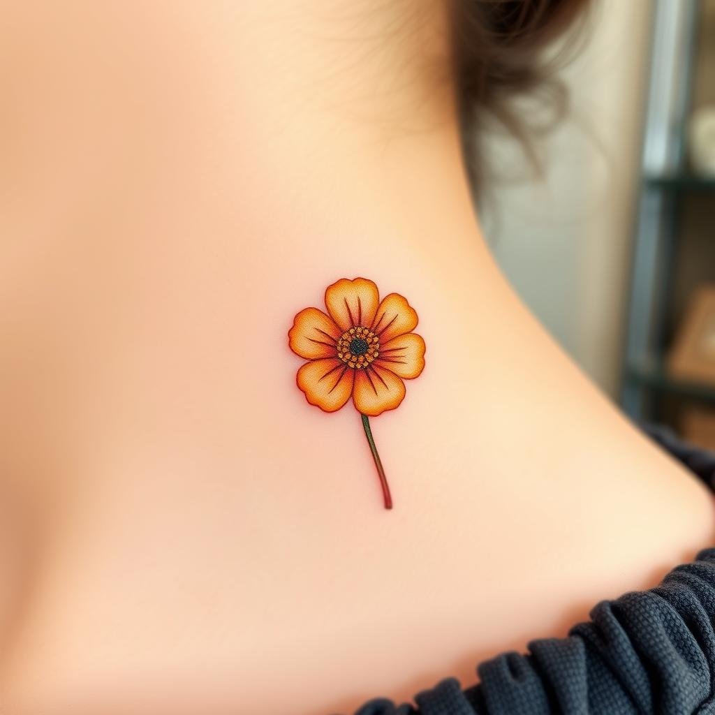 Micro tattoos are small but full of meaning. You can get a tiny marigold or cosmos on your ear, wrist, or ankle. They show that small things can be very beautiful.