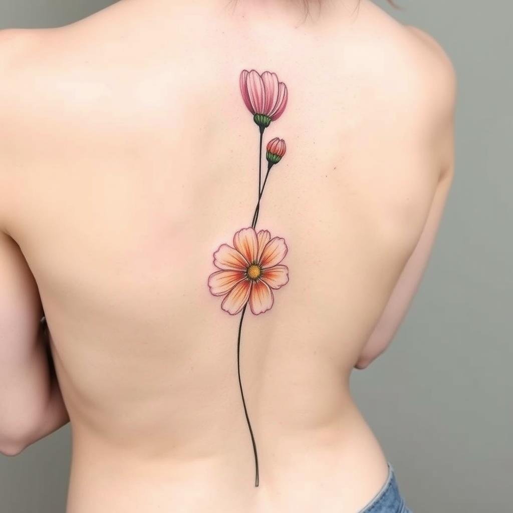 Spine tattoos are also a bold choice. They follow the shape of your back with marigold and cosmos. This creates a striking look.