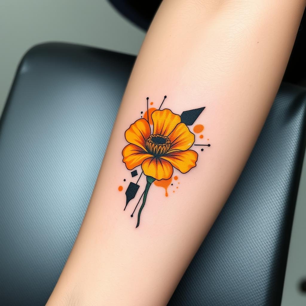 Watercolor tattoos make your october birth flower design look soft and dreamy. They look like watercolor paintings. Your marigold or cosmos tattoo will be like a gentle brush stroke.